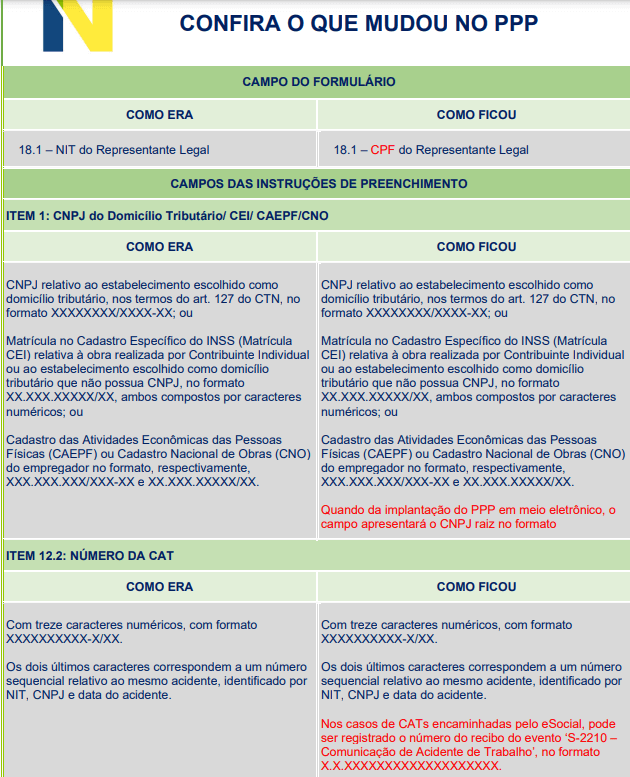 (Fonte: Ministério do Trabalho e Previdência - https://www.gov.br/inss/pt-br/centrais-de-conteudo/publicacoes/outras/OquemudounoPPPVersoFinal.pdf)